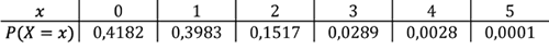 Stellen Sie die Wahrscheinlichkeitsverteilung von in tabellarischer Form dar. Geben Sie dazu die Wahrscheinlichkeiten auf vier Nachkommastellen genau an.