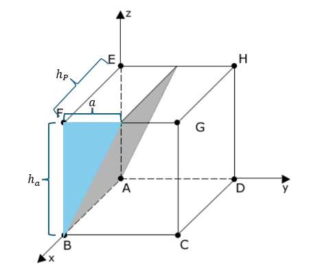 Die Abbildung zeigt einen Würfel der Kantenlänge in einem Koordinatensystem. Drei Seitenflächen dieses Würfels liegen in Koordinatenebenen.