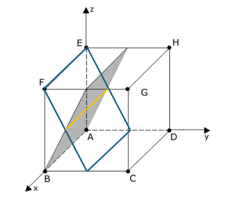 Zeichnen Sie die Schnittfigur dieser Ebene mit dem Würfel in die Abbildung ein und geben Sie eine Gleichung der Schnittgerade der Ebenen und an.