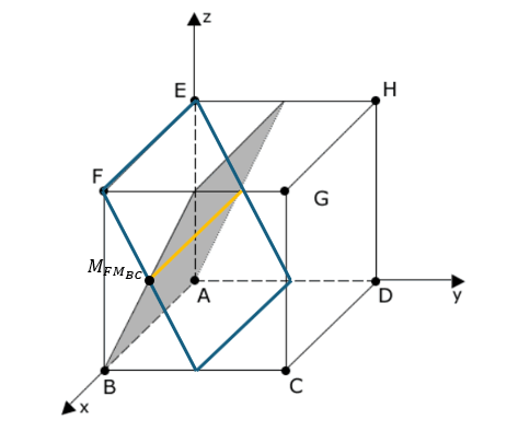 Eine zweite Ebene enthält die Punkte und sowie den Mittelpunkt der Kante .