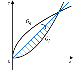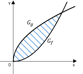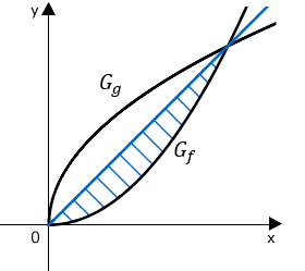 Der Wert des Integrals entspricht dem Inhalt der Fläche von und eingeschlossenen Fläche.